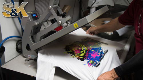 S&K is a FULL SERVICE Dye Sublimation printing company that can supply you with all of the items you will need to start pressing your own products. We can supply you with the proper Dye Sub paper for your products to ensure that the outcome is exactly what you need so your customers, family and friends will be happy with the results! This 'do it yourself' idea is great for those wanting to make extra money by selling items such as: t-shirts, socks, mugs, and more! You can sell these items to local sports groups, youth and social organizations, schools, reunions, family functions and more!
